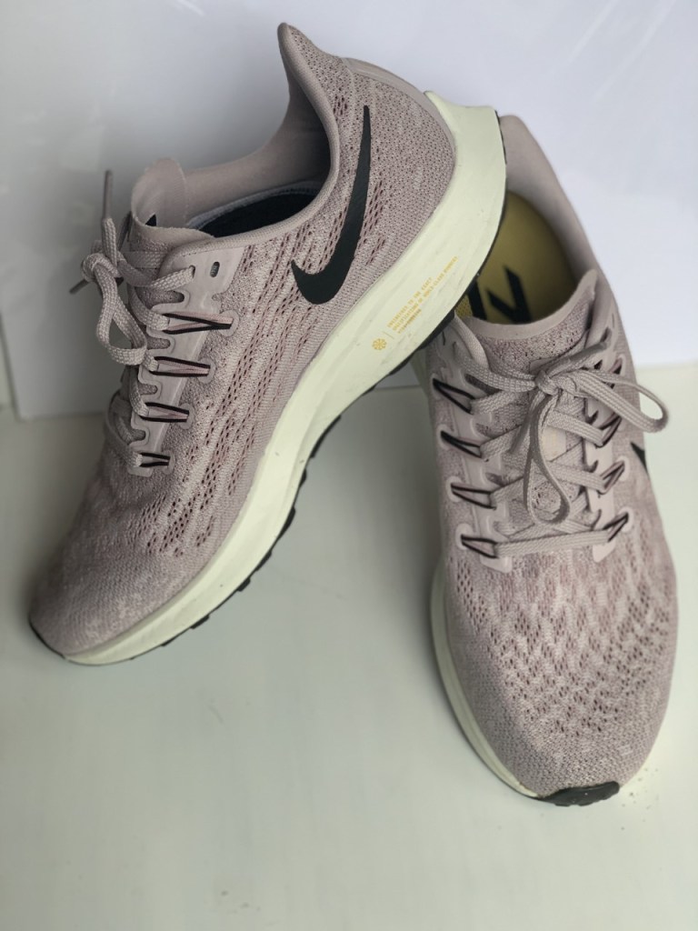 Nike Air Pegasus. This shoe has been around over 37 years which means it won’t be a shoe that I will fall in love with, and then it goes away after a couple of years. It is a neutral shoe, and I am a neutral runner. The price-point is one that I am comfortable paying, and I can find older colors on sale. I recommend going up a size, so if you wear an 8 in a regular shoe, you will need a 9 in your running shoe. I actually go up a size and a half because I like very thick socks, and I like a lot of room in the toe box. I don’t recommend going up a size and a half because if your shoes are too big, there is too much space for your feet to slide around, and they could end up ramming into the front of the shoe, which could in-turn cause you to lose your toe nails. No one wants to lose toe nails because of running. (I have lost a few.)