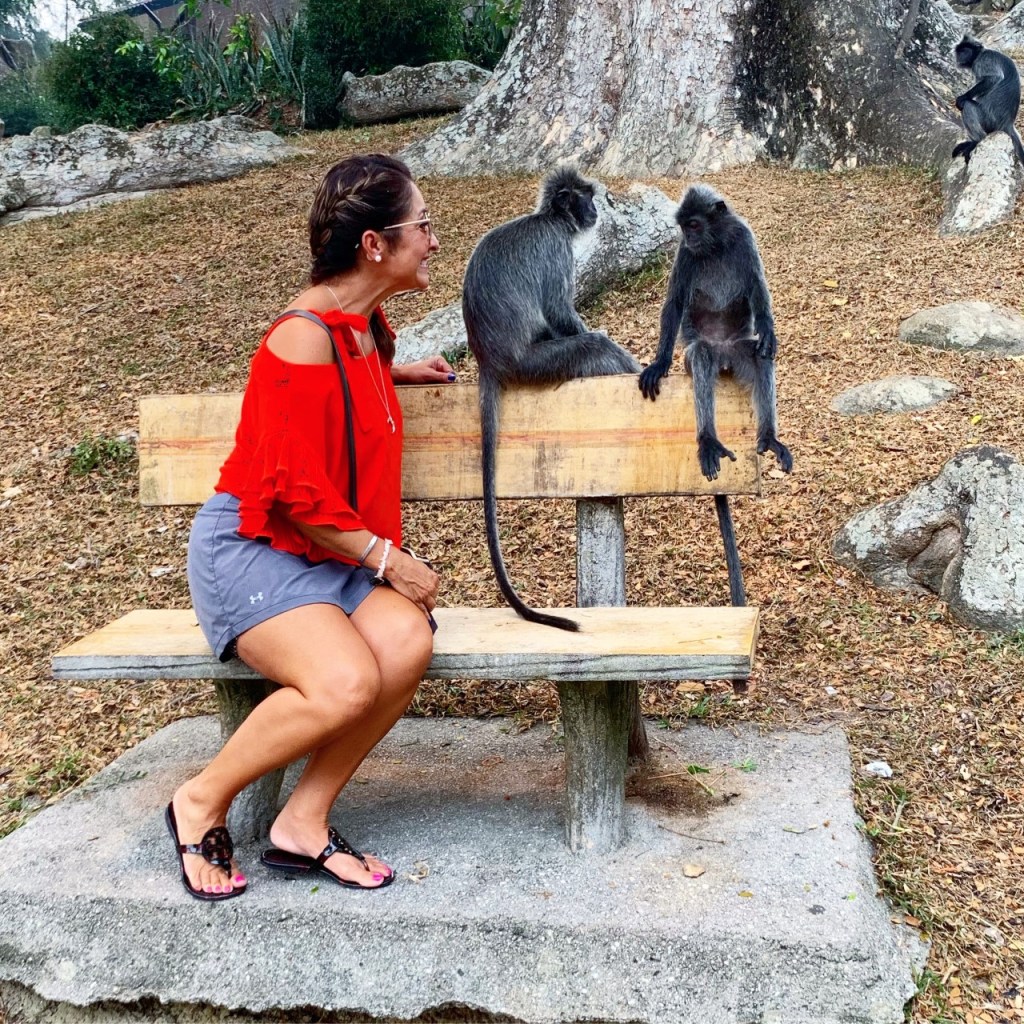 The next morning, our first stop would be in the Kuala Selagor District where we could feed monkeys, let them climb all over us, or we could just hang out and enjoy the lovely views with them. These little guys were little, but they had BIG personalities. None climbed on me, but they were all over my friends.