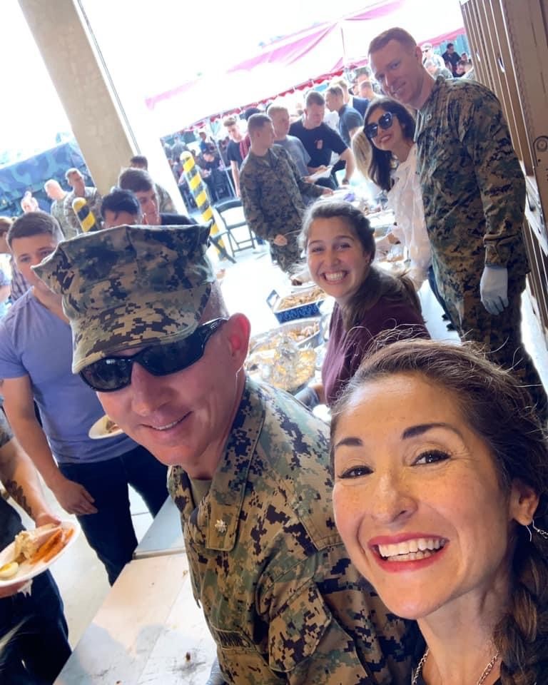 When we were done, we loaded up boxes and boxes of food and our friends drove the extra food to base to give to the young Marines. Most people love Thanksgiving leftovers, but there were no leftovers. All of the extra food went to the barracks, and we all loved the idea of sharing.