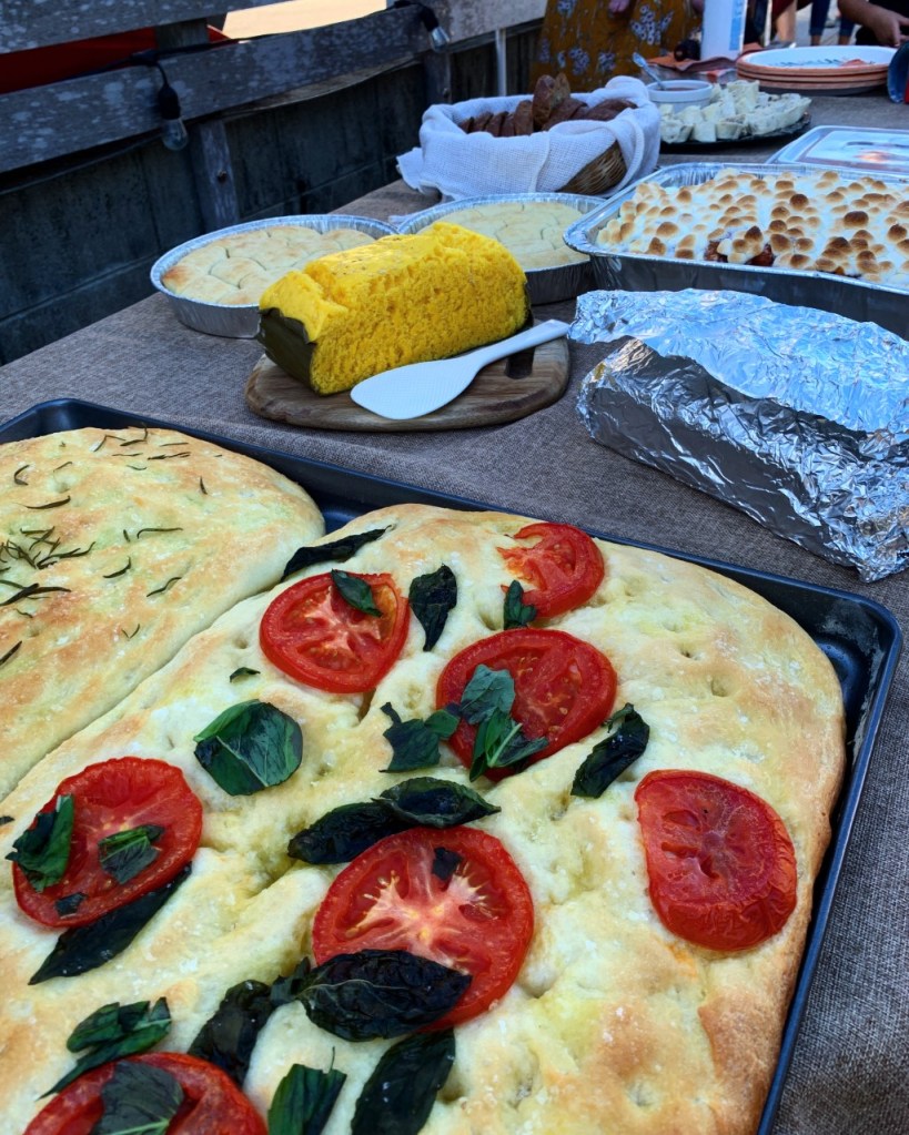 Because of Coronavirus, and the precautions that we have been taking to preserve the health and wellness of our community, we knew that we could plan a little something, but it would have to be something that ensured our safety. Fortunately, in Okinawa, November’s weather is perfect for outdoor dining. We also live on a tiny street that we could shut off to traffic because everyone on the street was either traveling or joining us. We rented tables and chairs, and we set them up with spacing between each table. We also limited the seating at each table. By having so much space to work with, perfect weather, masks, sanitizer, and a small group of friends, we were able to create a very special, and very safe dinner. Everyone pitched in, and we had turkey, ham, brisket, and tamales. We had more sides than I could count, and the bread…oh the bread. We had traditional rolls, corn bread, pumpkin bread, wheat bread, and two types focaccia. I think everyone brought bread. I guess that I am not the only bread-lover on the street.