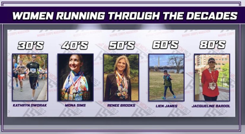 I was recently approached by someone on the Marine Corps Marathon staff asking if they could do a short write up about my running. My first instinct was to hit the delete button. My second instinct was the read the email 3 times to make sure it was actually meant for me. My third instinct was to shut email down for a later time when I could concentrate on the questions they asked. Could they really be asking MY opinion about running? Did they really want to know MY story? Rationally, it makes sense. I have run 17 consecutive Marine Corps Marathons. I’m in my 40s, and they were looking to highlight women at all ages. I’m a woman, and I’m a runner. They actually wanted to hear my story.