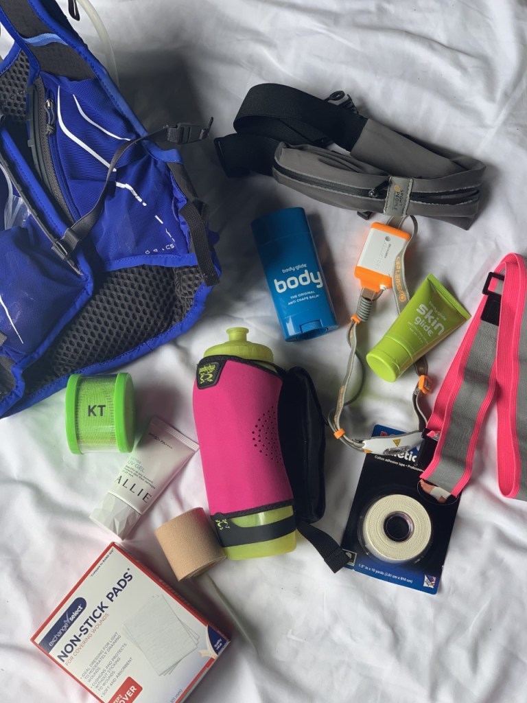As I pulled out each garment, I realized that I had complicated things because running became more complicated. Seldom does one chafe on a 3 mile out-and-back. Seldom do you lose a toenail or even get a blister on a 3 mile run. If your bra isn’t doing it’s job, you are home within 30 minutes. However, when you plan to be on the road for 2 hours or 20 hours, all of a sudden, a chafe CAN become a big problem. You can’t worry that your girls are bouncing around; they have to be held in place. Changing out your shoes, especially if it rains, could save your feet. As I consider the trek or traverse, I can look at all the gear more as essential and not as over-the-top, because as a runner 20 years ago, I would have thought that 4 pair of running shoes was over the top, and I would have definitely thought that running/walking 80 miles over the course of a day was over the top.
