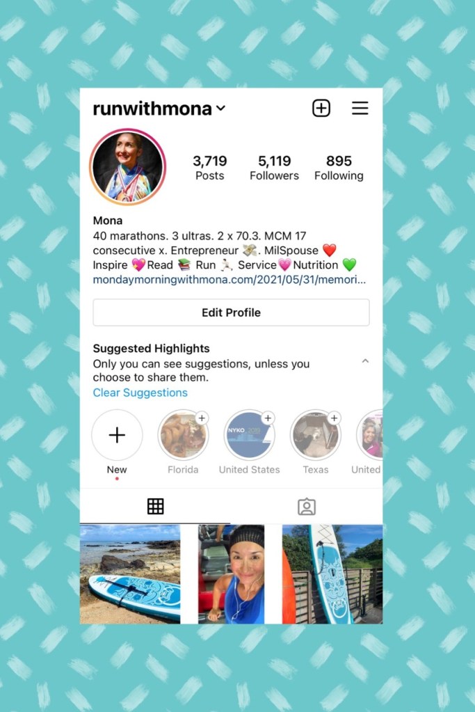 I will run 4 days a week. I will only run Monday through Friday. I will do at least 1 treadmill run a week, and I will do one evening run every week. At this point in time, it looks like Mondays will be treadmill days. On Tuesday evenings, I will run and give my boys the evening to themselves. Wednesdays will be rest days, and Thursdays and Fridays will be when I do my longer runs for the week. The back-to-back longer run days will give me good practice so I can reach my run goal. I anticipate that I will need to wake up earlier and earlier on Thursdays and Fridays so I can run before the heat zaps all of my energy, which means that at some point in time in the training, I will be setting my alarm in the 3:00 hour. This will allow me to get the longer runs done before the sun really starts to rise. By doing 4 runs a week, I should be able to hit the gym 3-4 days a week, will add in 1 yoga session a week, and can get on my paddleboard once or twice during the week and on weekends too. The training could shift, but this is what it looks like as I begin. I will check in with the blog periodically about the training, and the day-to-day workouts will be shared on Instagram (@runwithmona).