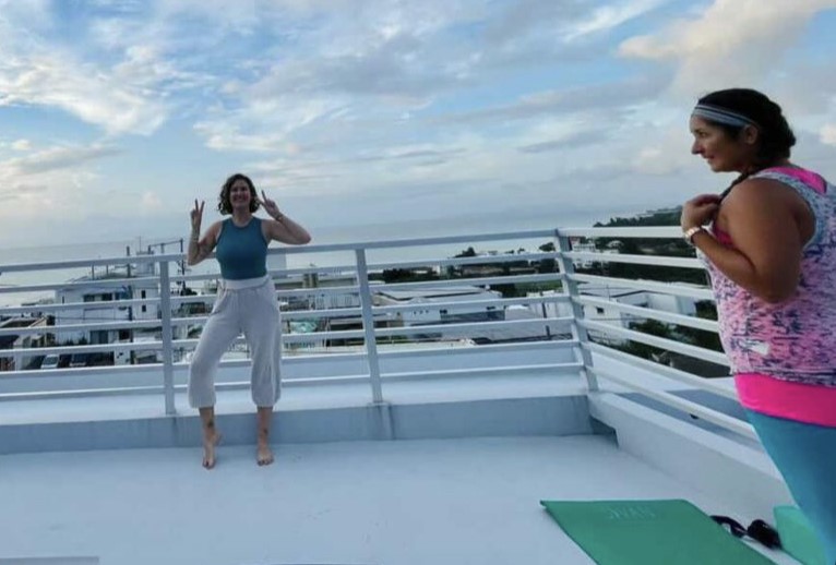 Coronavirus hit our little island, and everything shut down. Some people went into hibernation. Some people expanded their offerings. I did a lot of praying and meditating, and I took advantage of both. I stayed close to home, and I found a yoga instructor who would guide me through yoga-flows online. This was an ideal offering for a person who is a little (or a lot) embarrassed by her lack of flexibility. I could stretch and flow without worrying about anyone judging me. Basically, I could hide behind a screen, and it was a great way for be to lean into this new activity.