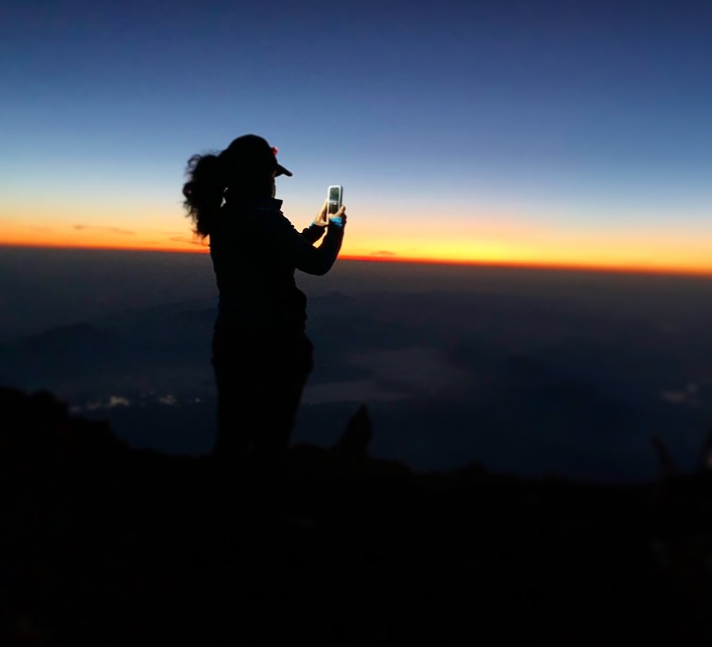 We woke up at 2:30am, and we began hiking to the summit by 3:00am. We had not seen many people on day 1, but this early hike proved to be very different. Two trailheads combined, and many people wanted to see the sunrise, so we all snaked up the mountain with our headlamps on. This part of the mountain was technical, and we went very slowly, which suited me fine. It was dark, and there were so many rocks. I prayed my rosary (with the exception of the Stations of the Cross), and before I knew it, I saw the sign saying that we were 200 meters from the top. I nearly started crying. I had so many emotions built into this, and we were about to accomplish something significant. We were blessed with the most amazing morning, and the views took my breath away. We got lucky. I didn’t realize how lucky we were until I started talking to so many people who had not been as lucky. I met a Japanese guy who had climbed it 18 times and only had good weather 1 time. We were essentially experiencing the 1 in 18 times.